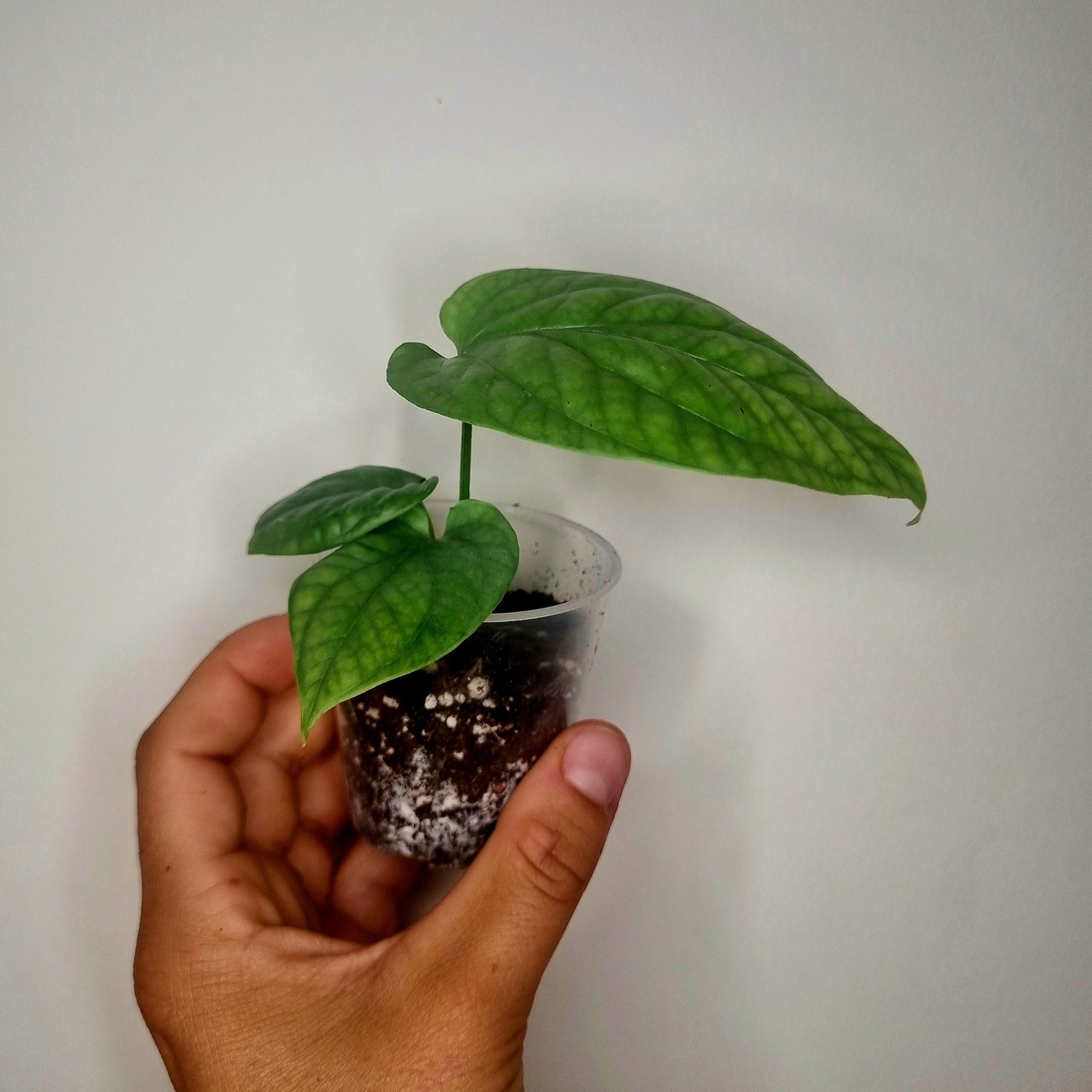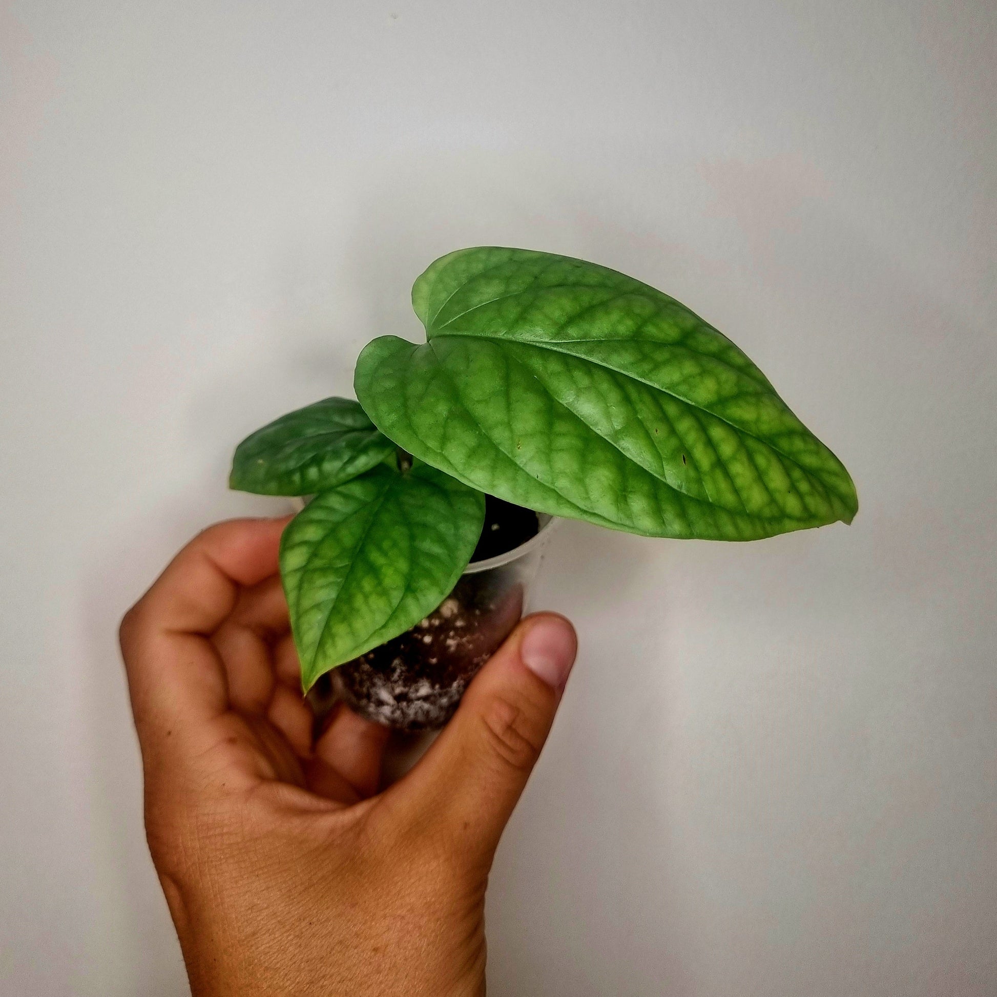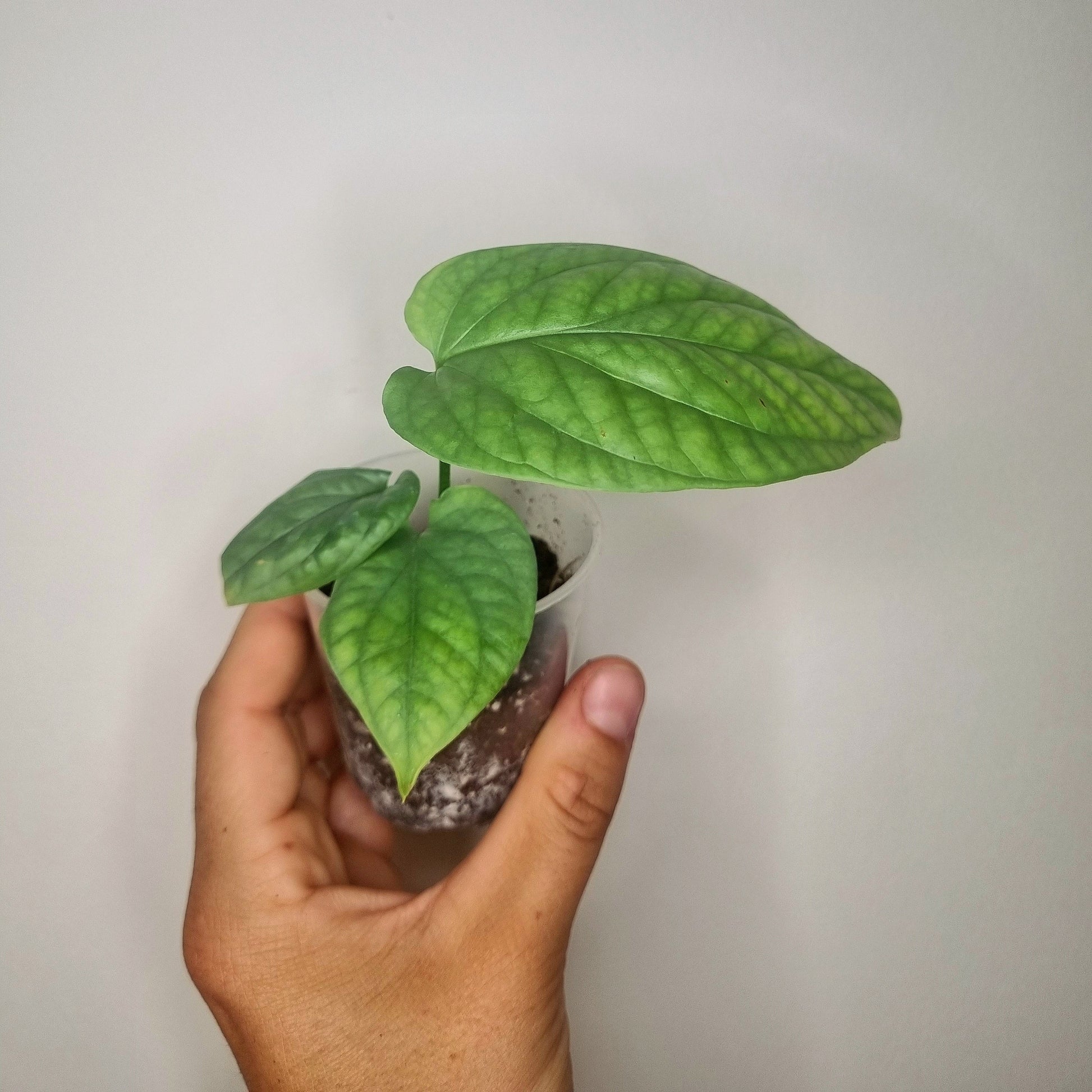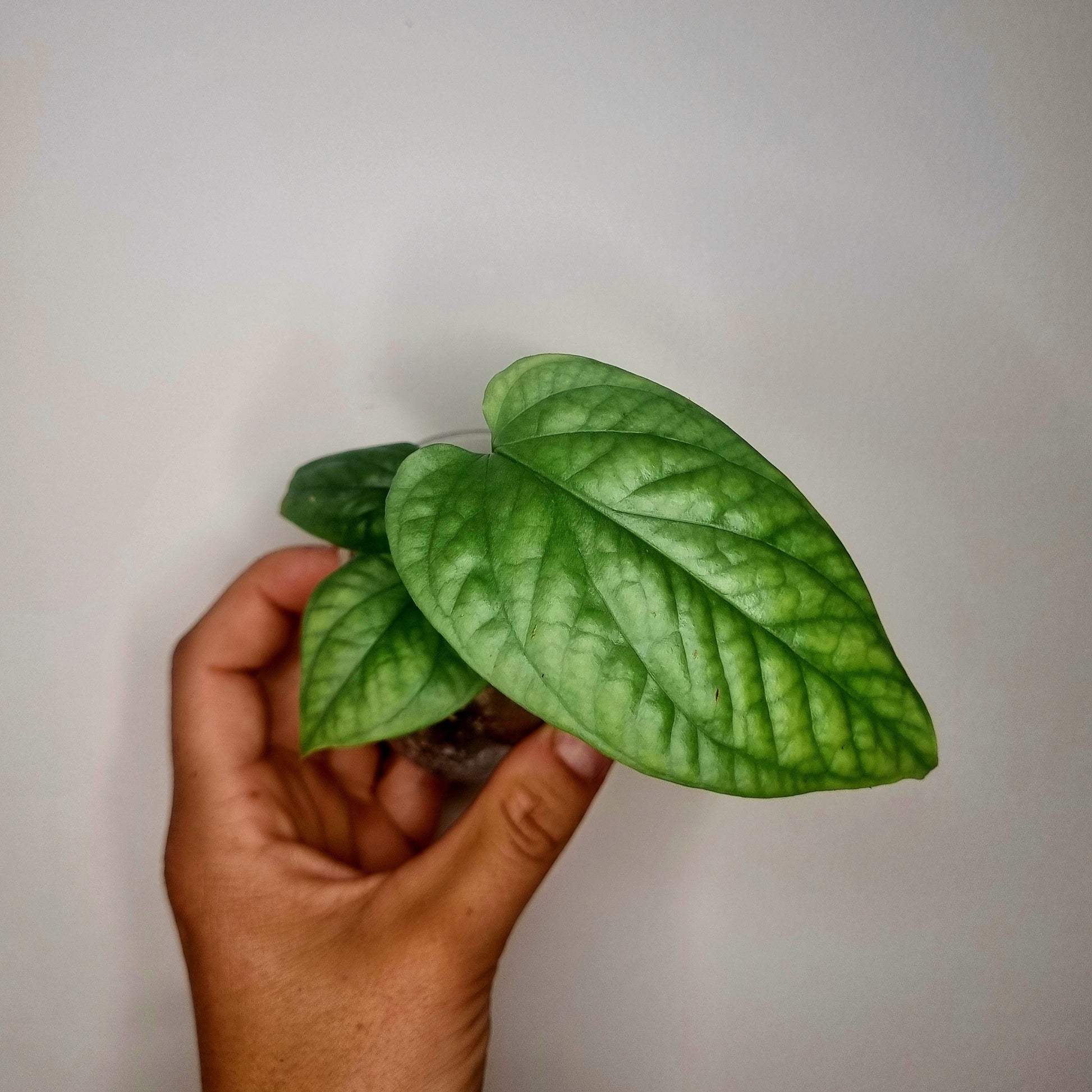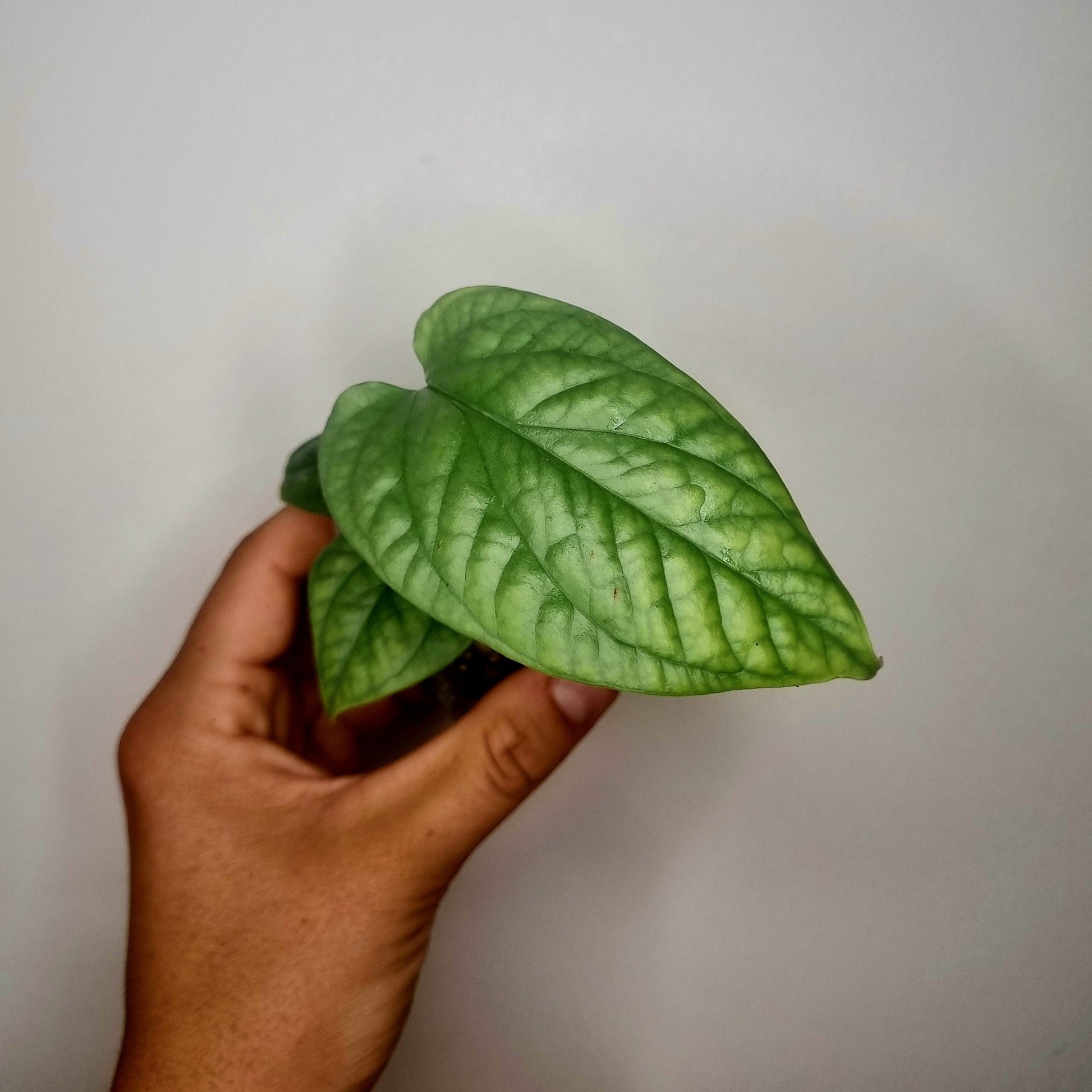 L'Amudrium medium silver est une magnifique plante tropicale originaire d'Asie du Sud-Est. Cette plante grimpante aux feuilles vertes claires avec des sous-tons argentés a des feuilles texturées qui, lorsqu'elles grandissent, ont des fenestrations qui ressemblent à celle de la famille monstera.